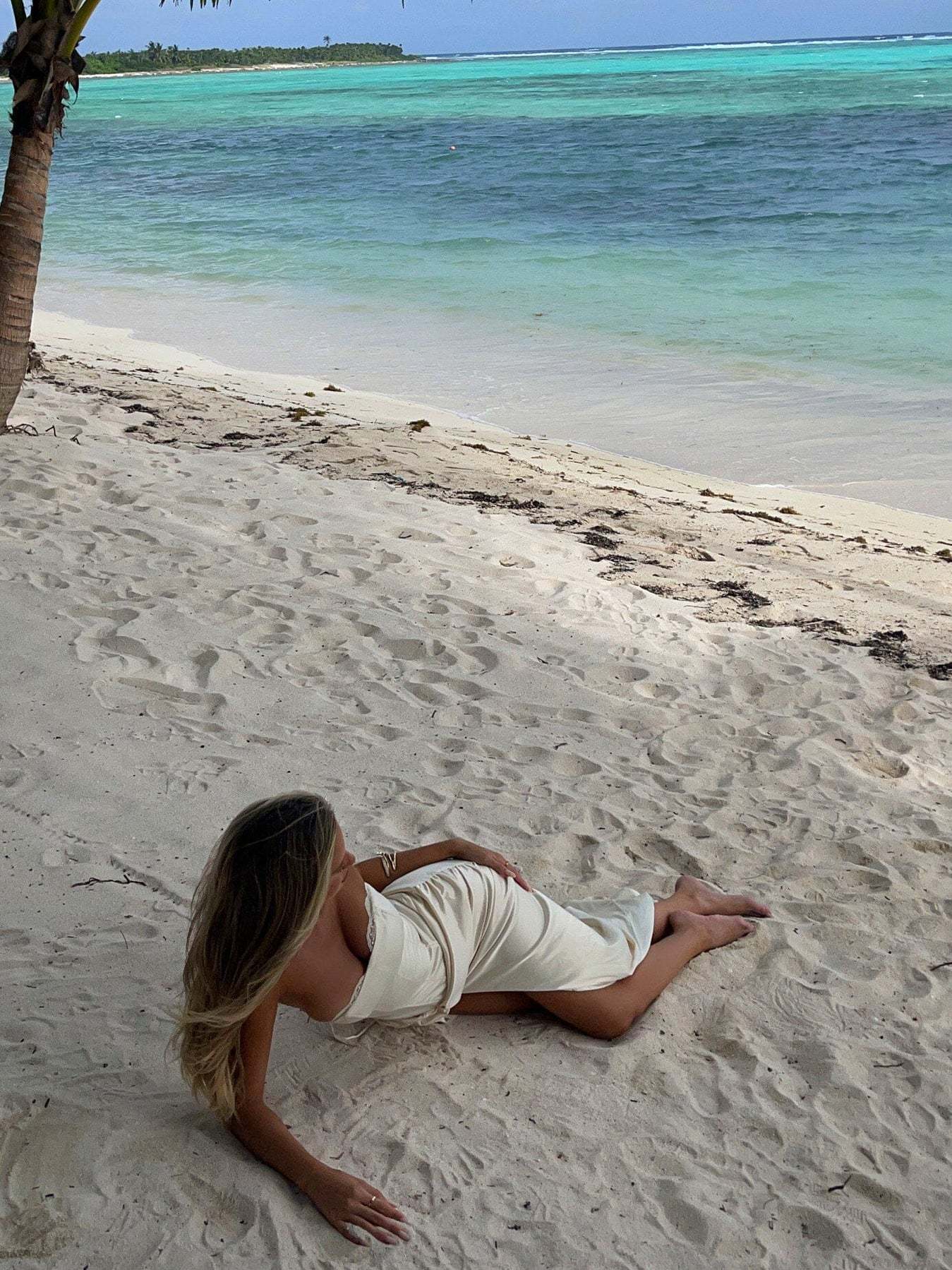 Une plage de sable blanc, un souffle chaud, une silhouette qui s’avance avec grâce.