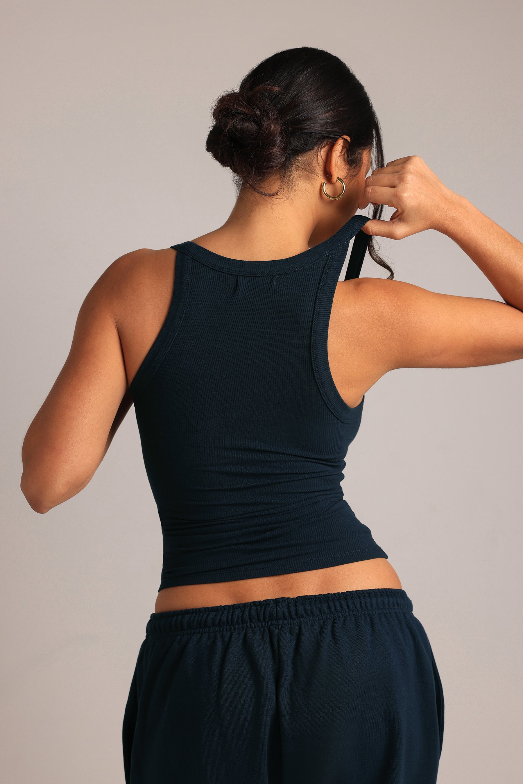 Le Rounded Plunge Débardeur combine une ligne élégante et une vraie facilité à porter. Son encolure arrondie, son dos nageur raffiné et ses finitions discrètes lui donnent un rendu net et soigné. Réalisé dans une matière fine côtelée et respirante, il suit naturellement la silhouette avec une sensation légère et agréable. C’est une pièce simple, flatteuse et polyvalente, facile à porter aussi bien en version décontractée qu’avec une tenue plus soignée.