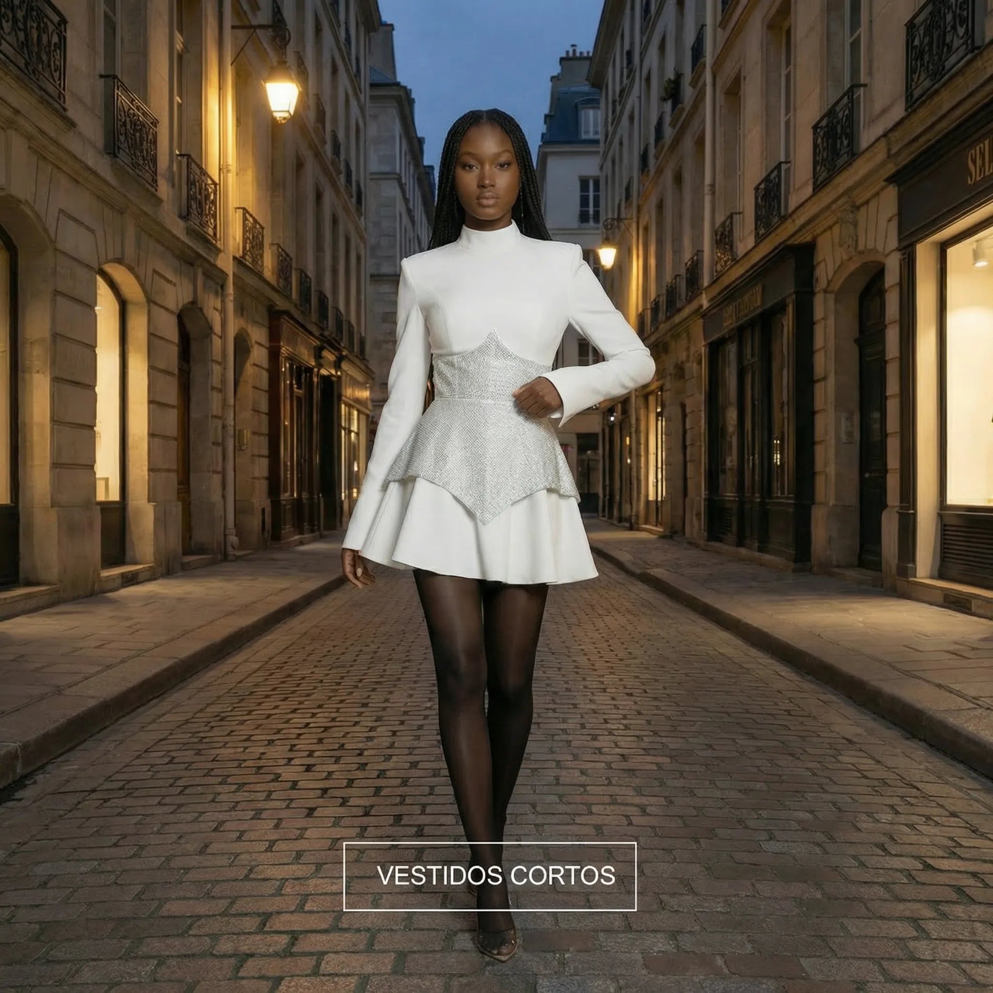 Léandra Robe Courte — Ébène & Plume d’Ivoire